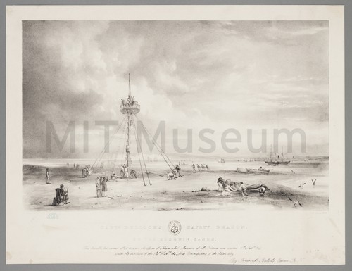 Capt. Bullock's Safety Beacon, on the Goodwin Sands A lithograph after an illustration in 'Nautical Magazine' depicting the construction and …