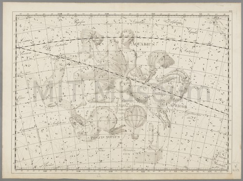 Capricornus, Aquarius, Picis Notius, Microscopium, Globus aerostaticus black and white star atlas that is part of Bode's Uranographia sive …