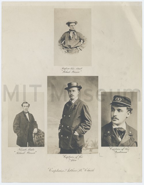 Capt. Arthur H. Clark and crew, front and back of Ville de … Four small sepia-tone photographs on one sheet. Top to bottom: group portrait …