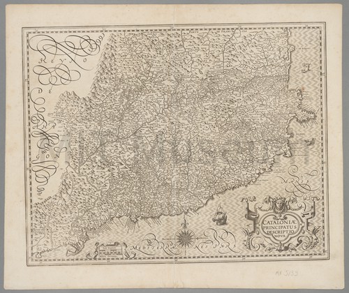 Cataloniae Principatus Descriptio Nova A map of Catalonia from the Mercator-Hondius Atlas, Atlas sive cosmographiae meditationes …