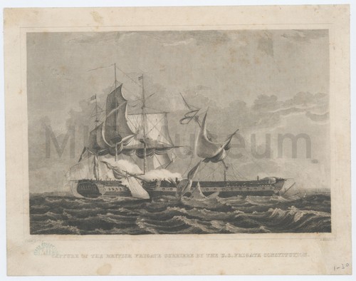 Capture of the British Frigate "Guerriere" by the U.S. Frigate "Constitution". Scene of the action on 19 August 1812 between the frigates Constitution …