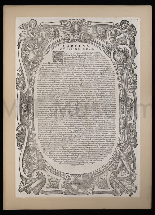 Carolus Lotharingiae Dux. Engraved portrait of Carolus Lotharingiae in armor, in an elaborate border. On …