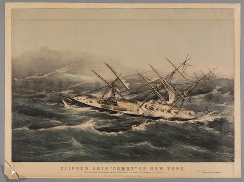 Clipper Ship "Comet" of New York, in a Hurricane off Bermuda, on … A bird's-eye view of the clipper ship 'Comet' being tossed by rough …