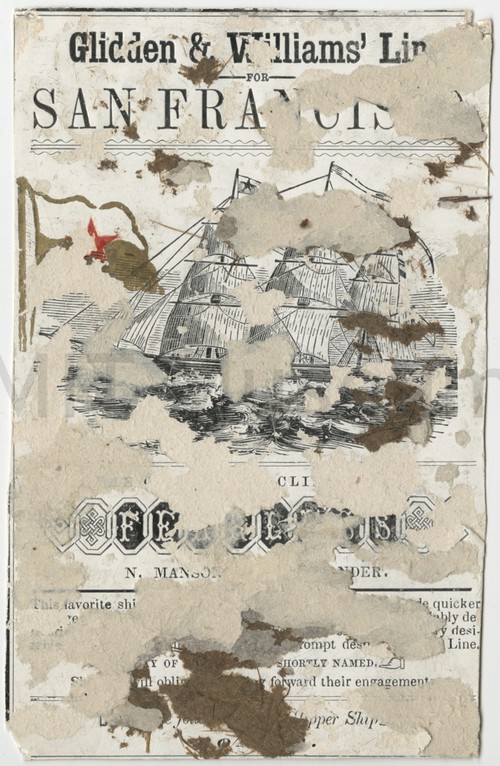 Cli[pper] "Fe[a]rl[e]ss" Damaged clipper card for a vessel departing for San Francisco. Commander N. …