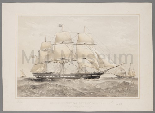 Clipper Ship "Duncan Dunbar," 1400 Tons Tinted lithograph of the starboard-side view of the British clipper ship 'Duncan …