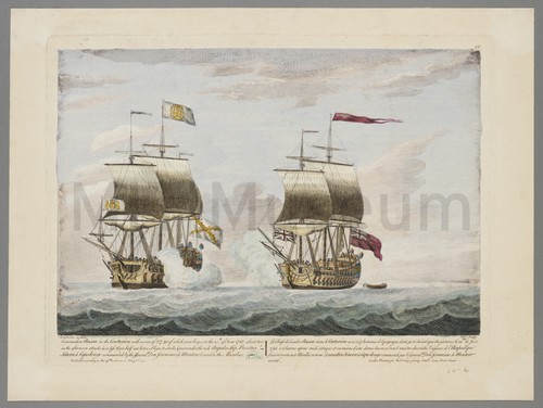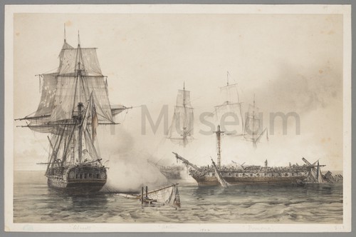 Combat de la fr̩gate "La Pomone" Command̩e par Mr Ducampe de Rosamel … A depiction of the naval engagement of 29 November 1811, fought between …