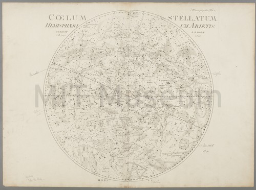Coelum Stellatum Hemisphaerium Arietis Set of 3 Cellestial Charts black and white star atlas that is part of Bode's Uranographia sive …
