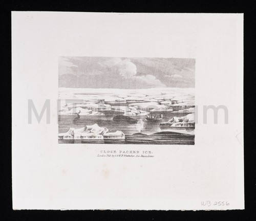 Close Packed Ice Monochrome lithographs of a whaling boat and three whales among floating pieces …