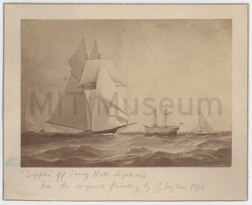 "Sappho" off Sandy Hook Lightship. Photograph of a painting depicting the ship "Sappho" at sea off Sandy …