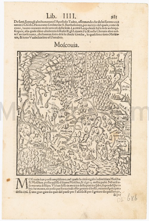 Cosmographia Universale: Moscovia Page from the book "Cosmographia Universale" with a map entitled Moscovia; from …
