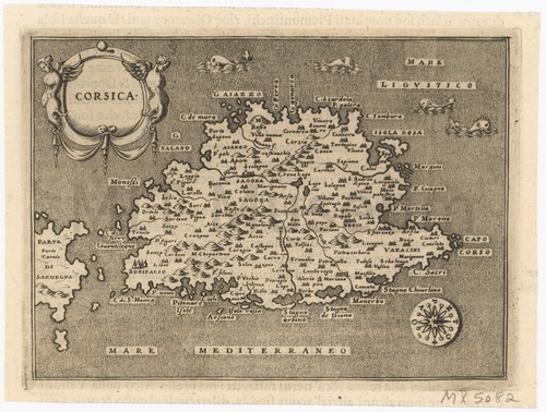 Corsica Map of Corsica with place names in Italian. Sea monsters in the …