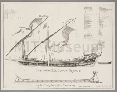 Coupe D'une Galere Avec Ses Proportions and Quille D'une Galere Surle Chantier A copperplate engraving from the book titled, 'Plan de plusieurs b̢timens de …
