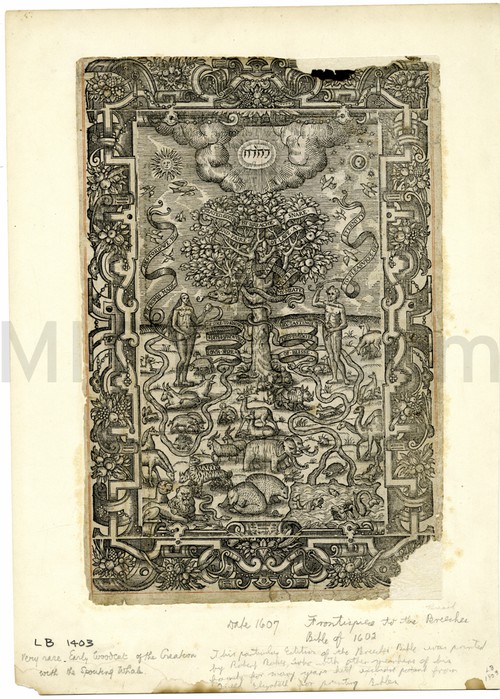 Created Good and Faire by Breache of Lawe a Snare. Uncolored engraving with a printed border in red ink. The engraving depicts …
