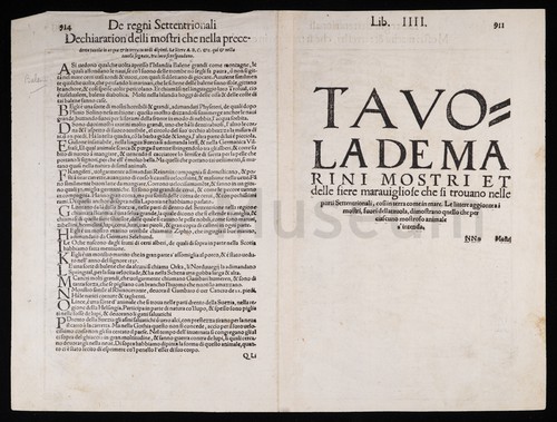 De regni Settentrionali. Monstri marini & terrestri, che si trouvano in orgni … Uncolored engraving depicting a sea full of various chimeric monsters, and in …