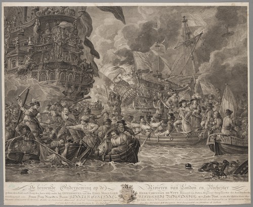 De beroemde Onderneming op de Rivieren van London en Rochester, gedaan den … A chaotic scene of violence and destruction at the climax of the …