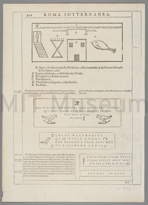 Delli Cimiterij ritrouati dall' Authore nella Via Latina Page 302 (verso 301) from the book "De Roma Sotterranea" ("On Subterranean …