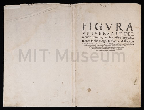 Figura del Mondo Universale. Uncolored woodcut map of the world, showing Asia, Africa, Europe, Japan, and …