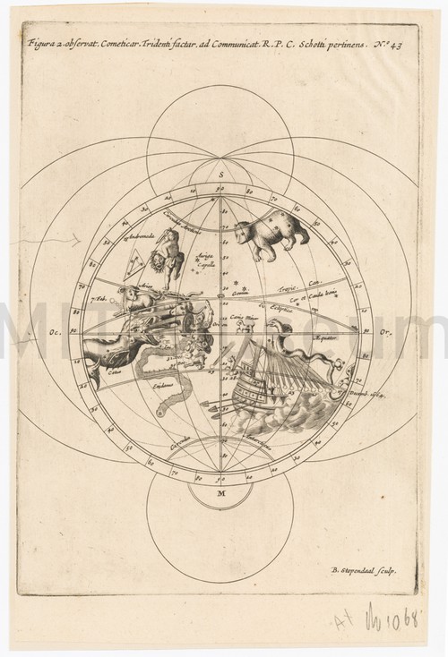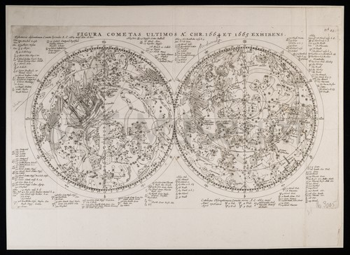 Figura cometas ultimos a chr. 1664 et 1665 exhibiens. Engraving depicting the two celestial hemispheres with their stars and constellations, as …