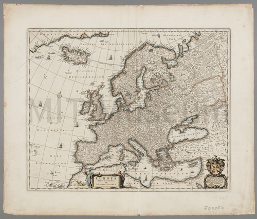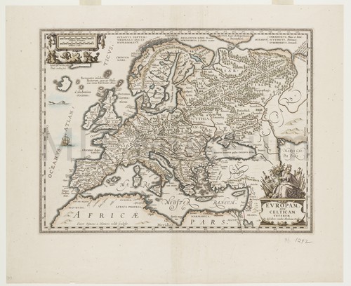 Europam Hand-colored map of Europe after Ortellius. Inland portions of the map are …