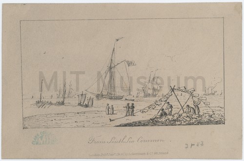 From South Sea Common Line engraving depicting vessels of different sizes, from three-masted ships to small …