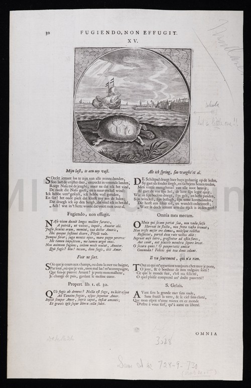 Fugiendo, Non Effugit. Page from Jacob Cats, "Sinne- en minnebeelden" (1627), with an engraving depicting …