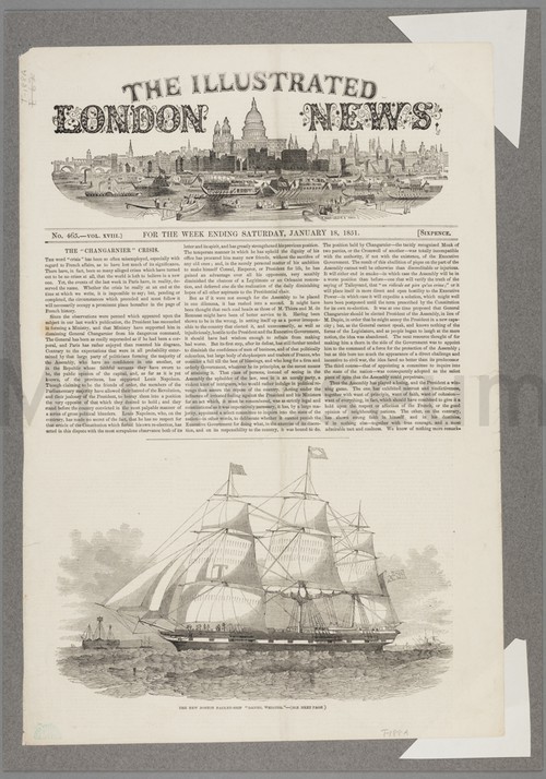 Front Cover of The Illustrated London News no. 465, vol. XVIII The front page of 'The Illustrated London News' for the week ending …