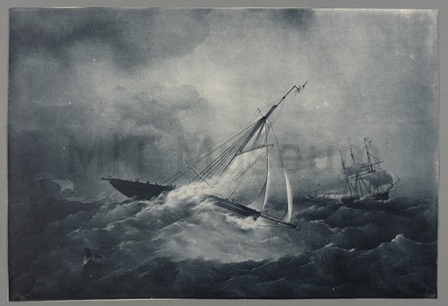 Four Sailing Cutters; Plumb Bow; Topsail and double head rig. Photograph of four sailing cutters in side view. Slight motion blur to …