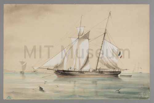 French Government Yacht A hand-colored ship portrait of an unknown French government yacht anchored in …