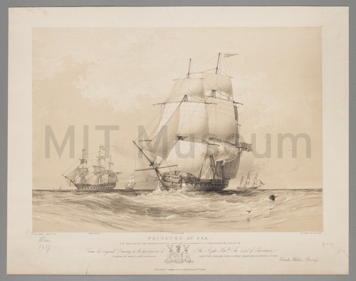 Frigates at Sea A tinted lithograph of the experimental frigates, 'Castor,' 'Inconstant,' and 'Pique,' on …