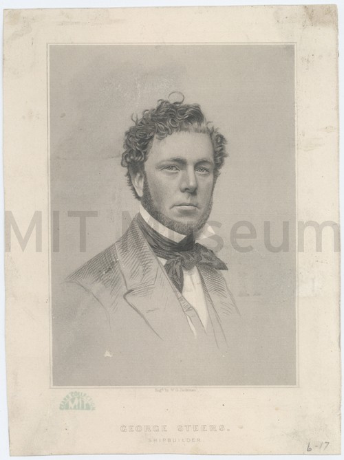 George Steers. Shipbuilder. Stipple engraving depicting the head and shoulders of a young man with …