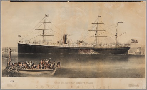 Great Republic Portrait of the passenger-cargo sidewheel steamship Great Republic. Pictured entering Hong Kong, …