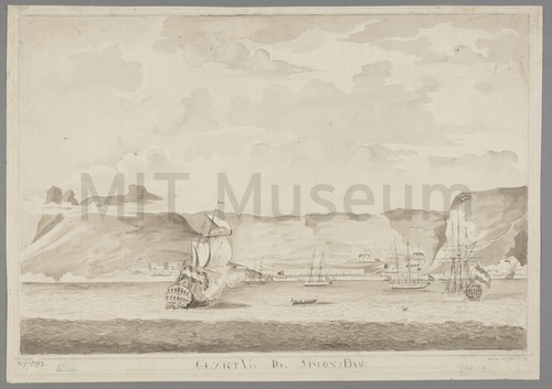 Gezigt Van De Simons Baay An original sketch illustrating a view of Simon's Bay near Cape Town, …