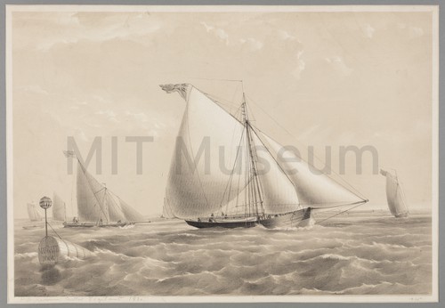 H. M. Revenue Cutter Vigilant towing the Barque Alfred of London, a … A lithograph of H.M. Revenue Cutter 'Vigilant' towing a Thames sailing barge …