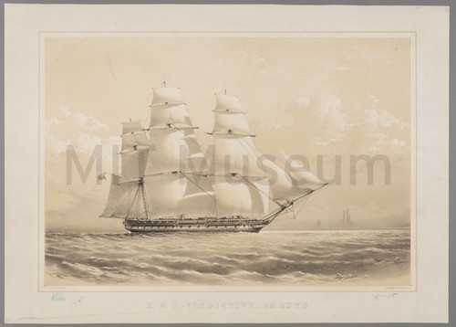 H. M. S. Vindictive, 50 Gun Frigate A starboard-side view of the frigate 'Vindictive' of the British Royal Navy …