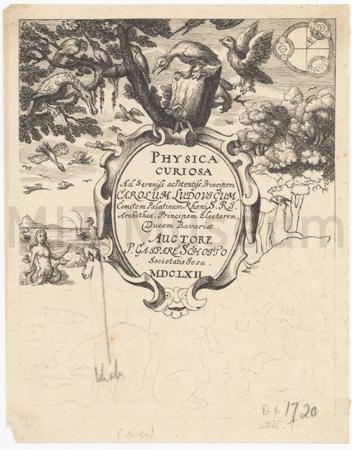 Hand drawing of title page from "Physica Curiosa" Pen and ink drawing of the title page of a natural history …