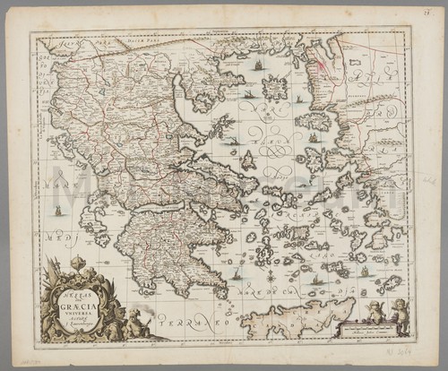 Hessas seu Graecia Universa Hand-colored, copperplate engraved map of the region of Greece, Crete, and the …