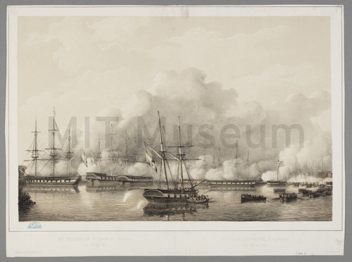 Het Veroveren Der Batterijen Bij Palembang // La Prise des Batteries Pr̬s … A tinted lithograph depicting the Second Expedition to Palembang in 1821. Palembang …