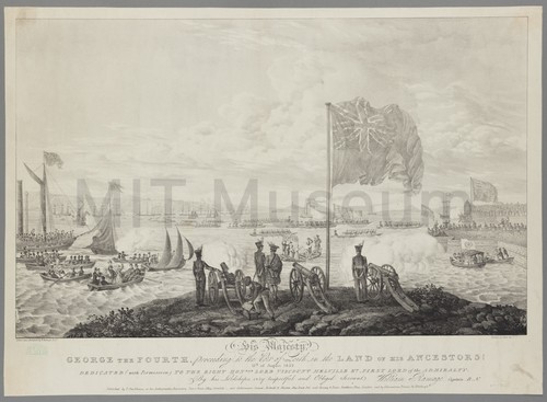 His Majesty George the Fourth, Proceeding to the Port of Leith in … A view of the landing of King George IV at Leith Harbor …