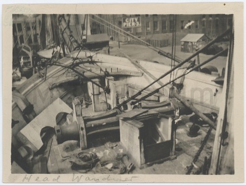 Head, "Wanderer" Photograph taken from on board the bow of the whaleship "Wanderer", showing …