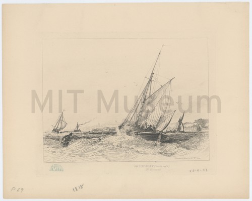 Hatch-boat (Double reef'd) off Gravesend Bow view of a hatch boat in a somewhat choppy sea, with …