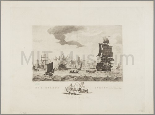 Het Eiland Onrust, naby Batavia A view of the shipyard on the island of Onrust in Batavia. …
