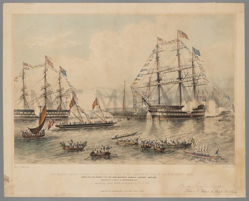 Her Majesty Queen Victoria's Tour Thro The Fleet in the Harbour of … A view of the welcoming party of the first leg of a …