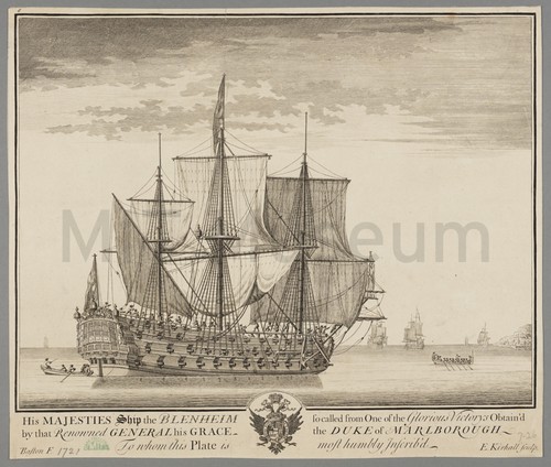 His Majesties Ship The Blenheim 18th century portrait of the HMS Blenheim. A full-rigged 90-gun second rate …