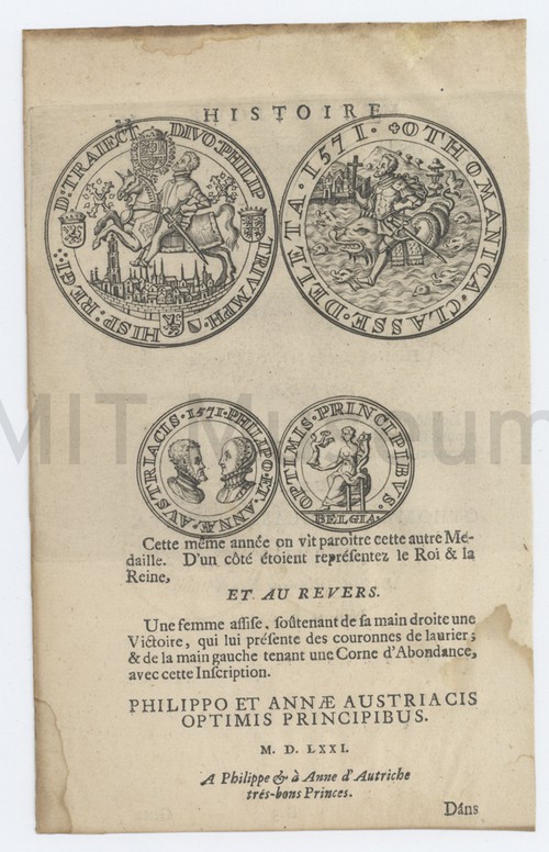 Histoire Medallique Page from a French text about Dutch medals, with images of two …