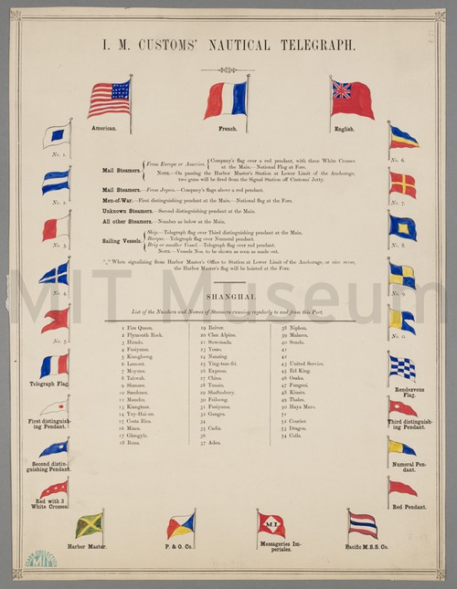 I.M. Customs' Nautical Telegraph Poster depicting maritime flags used at the Port of Shanghai. The American, …