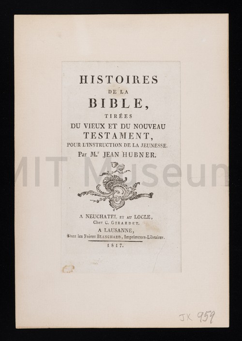 Histoires de la Bible, tir̩es du Vieux et du Nouveau Testament Title page from a book. Text reads, "Histoires de la Bible, tir̩es …