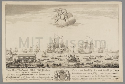 A Representation of the Fishery of Great Britain, Cod, Herring, and Whale A view of the abundant types of fishing in Great Britain. In …