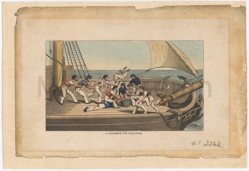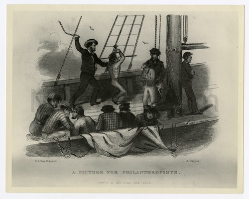 A Picture for Philanthropists Photographic reproduction of a woodcut from the 1840s showing a sailor being …