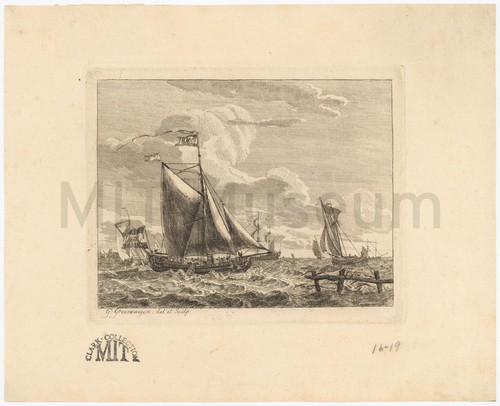 A Gravesend Tilt-boat, from an engraving, by P.C. Canot, 1753. Image of a boat with a single mast cut from the book …