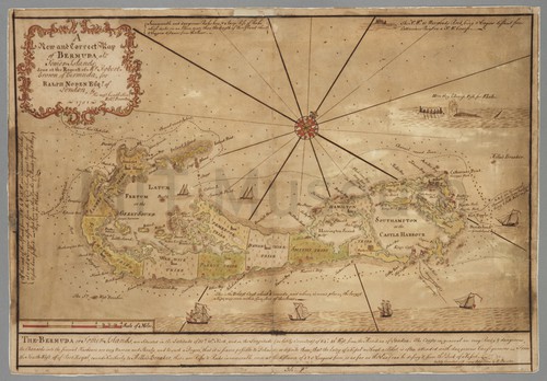 A New and Correct Map of Bermuda Ink and watercolor map/chart of Bermuda made and later corrected by Robert …